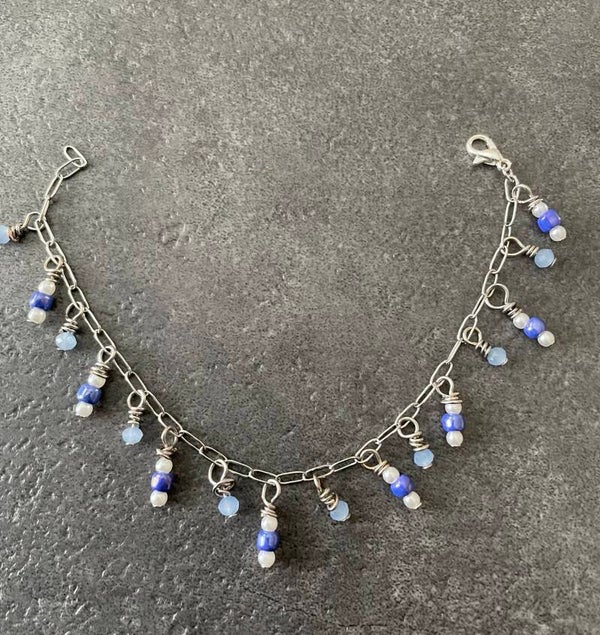Mooie rvs armband met facet geslepen kralen en imitatie pareltjes. De armband is 19 cm en lekker licht om te dragen.