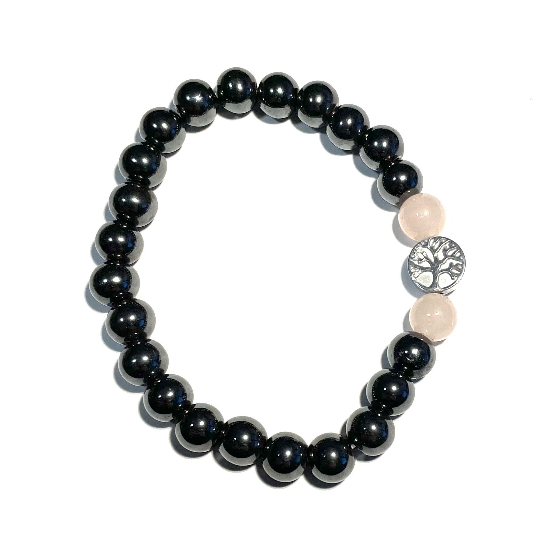 Armband hematiet rozenkwarts levensboom hematiet 18 cm