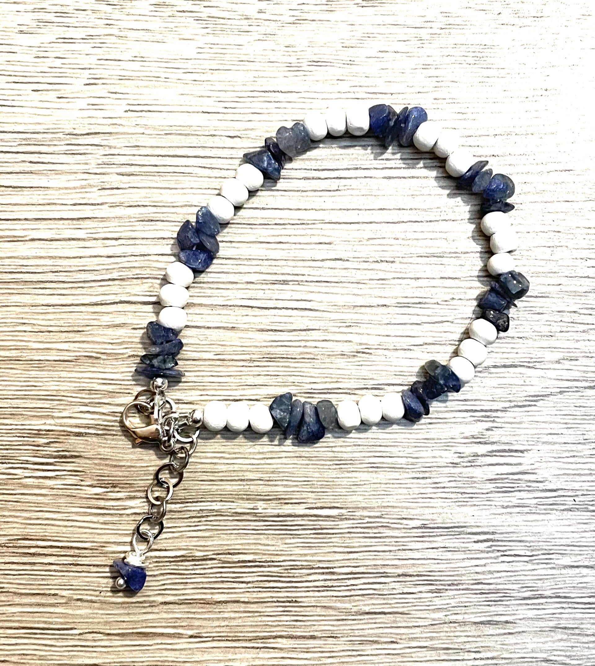 Een mooie armband met Agaat en houten kralen en verlengketting. De armband is 21 cm. Blauwe Agaat geeft zelfvertrouwen