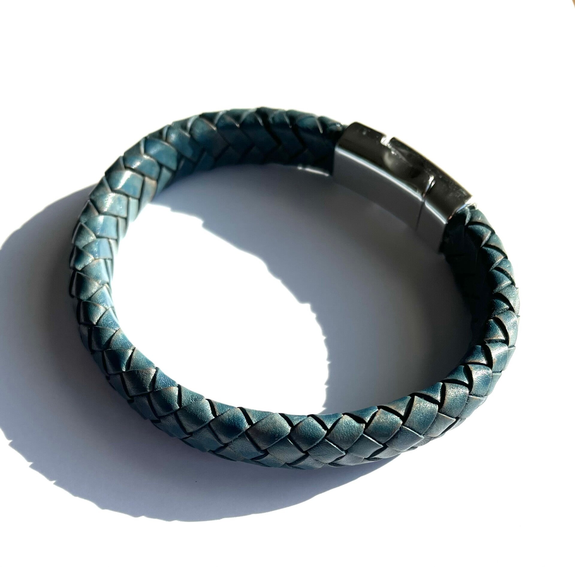 Mooie blauw leren armband. Deze is op maat te bestellen via mail